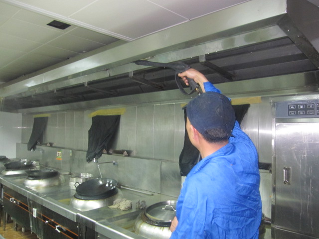 2、用铲刀将灶顶,烟道里的废油铲掉。烟道里面必须铲干净,因为这里不能用高压枪清洗,以防污水在完工2-3内可能滴在灶台上。